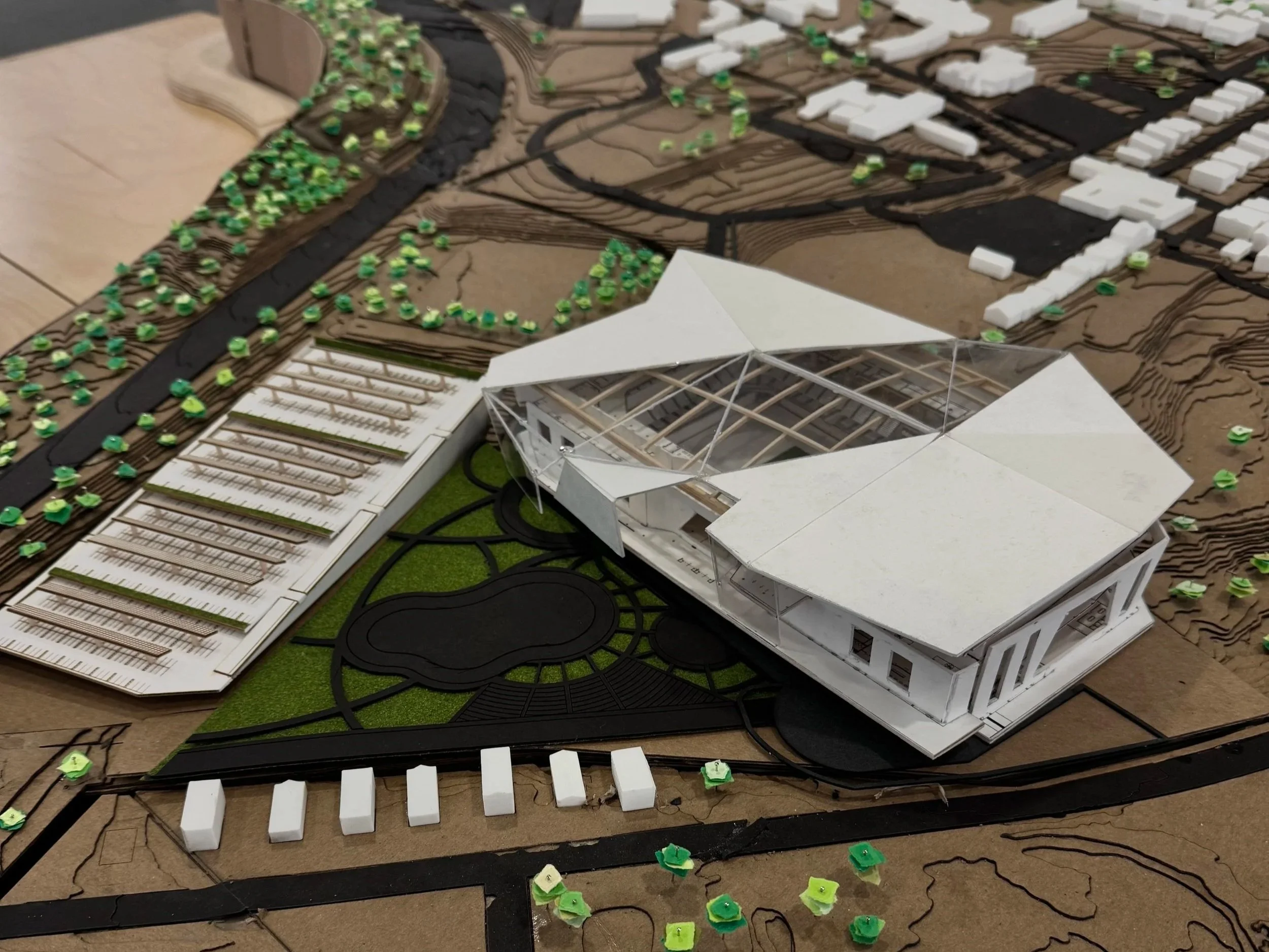 BuildingsNEXT Studio, better known as Solar Decathlon, was a studio in which the entire section was required to work together on a single project. The studio was tasked with designing a multi-use stadium on Marywood University’s campus. There were numerous groups, each with four to five students. I was selected to be part of the engineering and roofing teams. In these two groups, I helped design the stadium's structure and the shape and design of the roof panels.